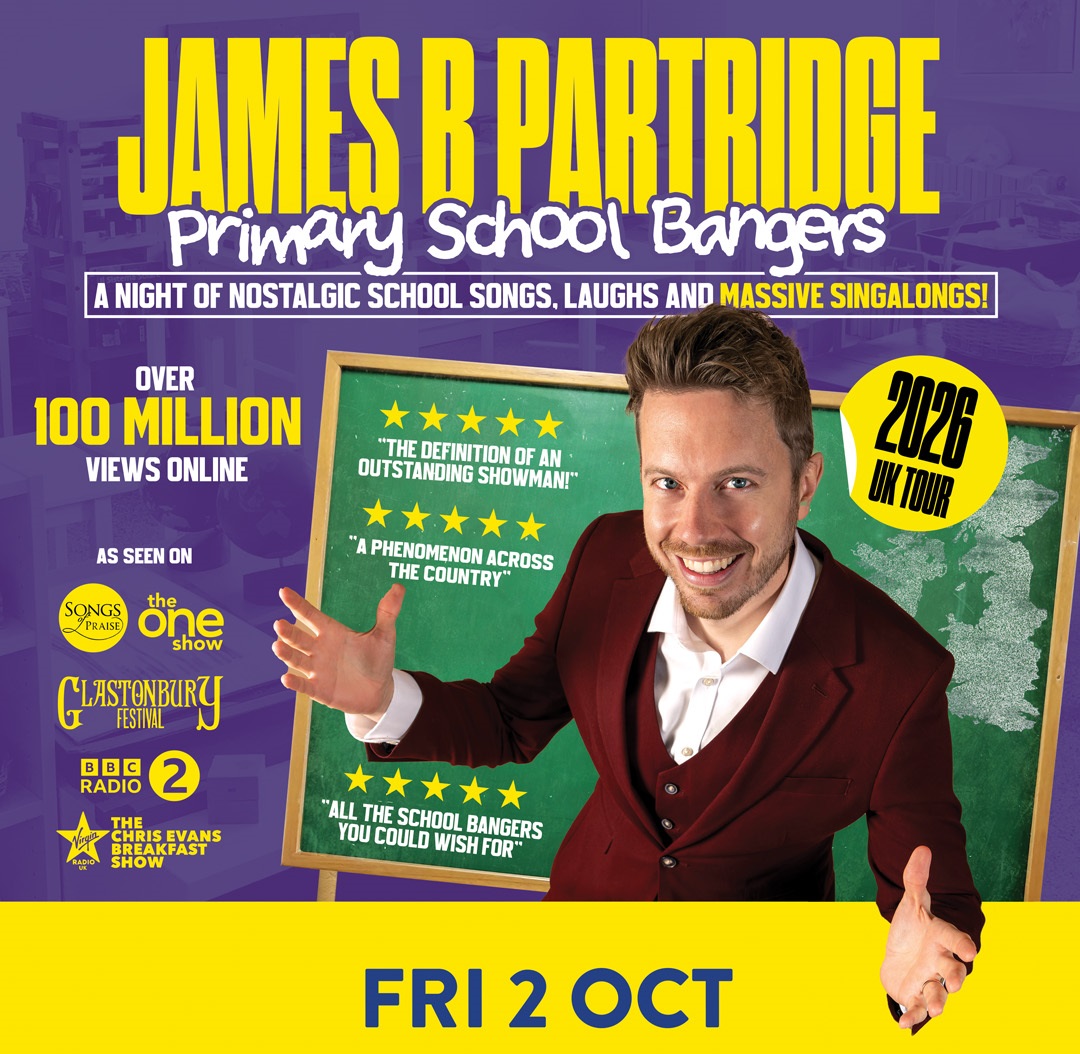 Viral sensation and Britain’s favourite teacher James B Partridge is bringing his hit live show Primary School Bangers to Monmouth as part of his biggest ever UK tour.